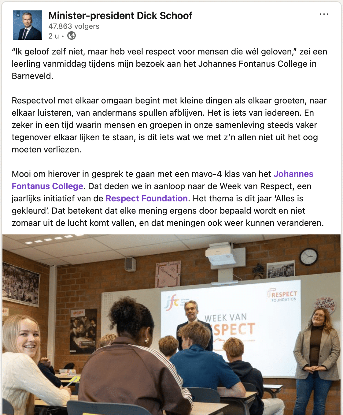 Als Respect Foundation bieden we concrete materialen aan zoals de RespectBox, draaiboeken en (les)materialen, maar échte impact maak je door te kijken naar wat er speelt onder jullie jongeren en daarop in te spelen. We delen een aantal inspirerende voorbeelden.