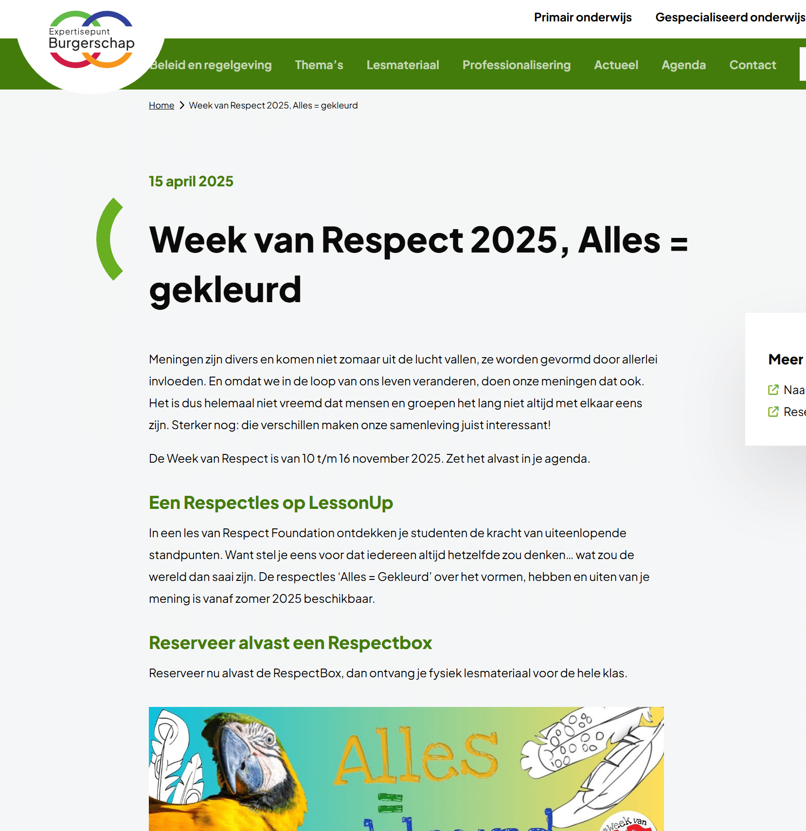In de Week van Respect brengen we initiatieven samen, vieren we de successen en zetten we alle plekken waar jongeren samen komen helemaal in het teken van respect. Op deze pagina zie je wat anderen organiseren: van een korte activiteit in de klas en mooie gesprekken tot een respecttour door de stad. Laat je inspireren en maak ook impact!