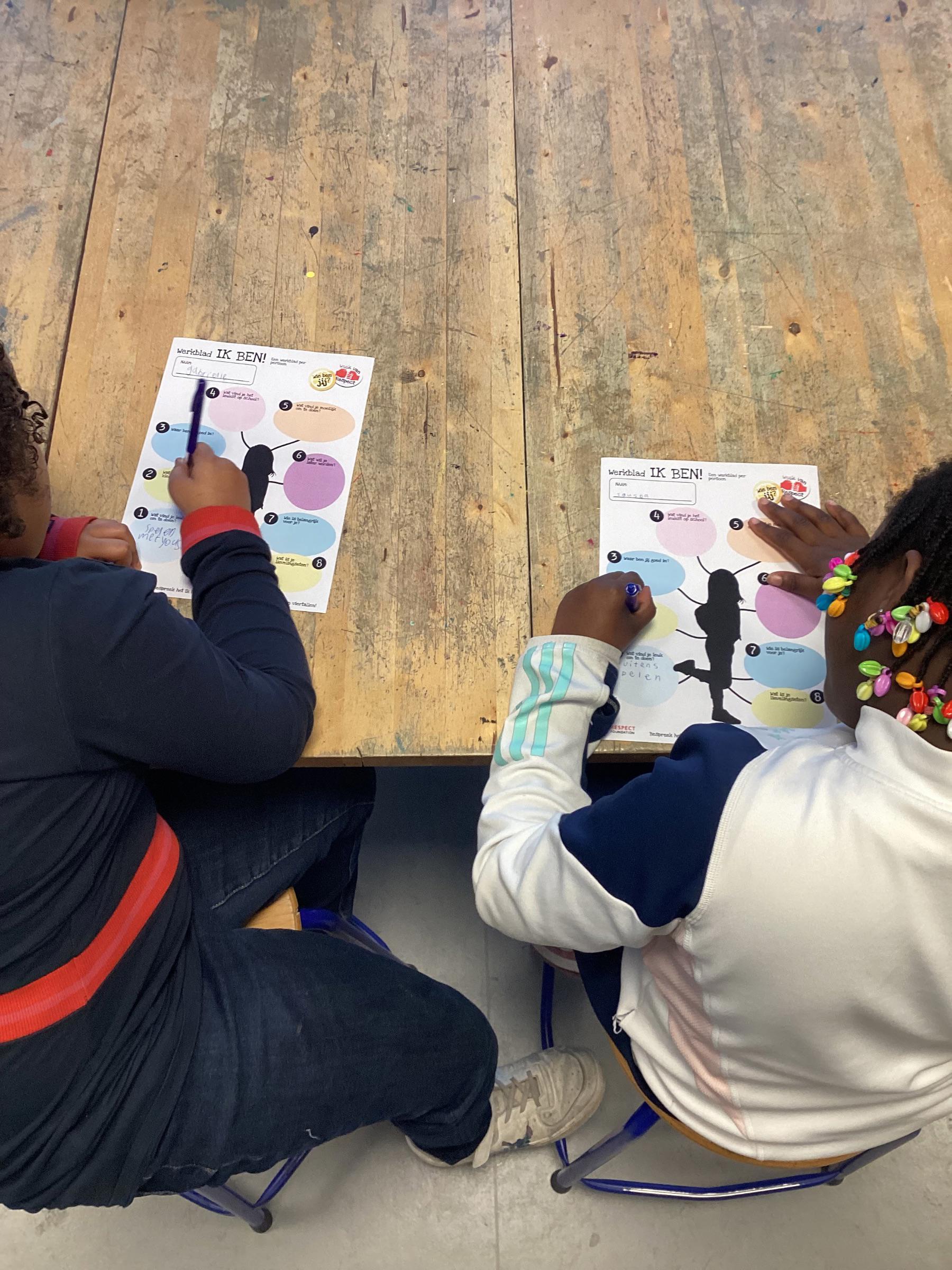 Alle 18 locaties van KinderRijk gingen aan de slag met de RespectBox. Pedagogisch professional Adrie van locatie BSO Noorddammerweg startte met haar kinderen met de opdracht ‘Ik ben’. Deze activiteitenkaart maakt op een leuke manier verschillen en overeenkomsten zichtbaar. Zo ziet de groep dat ze een brede mix aan persoonlijkheden zijn. Adrie: “De kinderen beantwoordden in tweetallen de vragen en overlegden of er overeenkomsten waren. Toen alles was ingevuld, maakten we een rondje langs de kinderen met wat zij wilden vertellen over het item dat zij het belangrijkst of leukst vonden. Eén kind vertelde dat zijn familie het aller-allerbelangrijkst is, want vrienden kan je kiezen, en je familie daar moet je het maar mee doen. En als je het goed doet, kan je er lang plezier van hebben. Een ander wilde graag vertellen dat zij bij de douane wil werken, want dan kan ze meehelpen om de wereld een beetje veiliger te maken.”